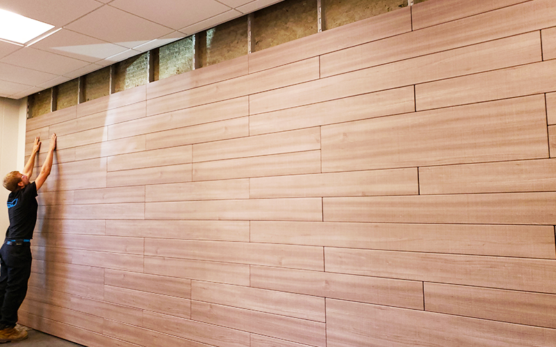 Quick and easy to install, architects and interior designers enjoy the flexibility of resurfacing existing wall structures without the mess and stress of traditional construction.